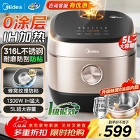 美的(Midea)电饭煲0涂层电饭锅5L大容量IH加热无涂层316L不锈钢内胆家用4-5人多功能智能预约煮饭锅一级能效 5L 【0涂层IH加热】316L不锈钢
