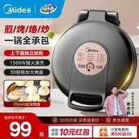 美的Midea电饼铛JKE30T76黑色款,家用双面加热煎饼锅,一锅双盘上下同时加热,锁住食材美味,煎蛋、烙饼、烤肉、三明治轻松搞定,满足全家早餐需求。不粘涂层设计,清洗更省心,折叠手柄方便收纳,节省厨房空间。