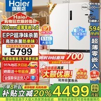 海尔(Haier)【新品小红花2.0】516升电冰箱594mm超薄零嵌入式60cm以内十字对开T型四开门抗菌净味国家补贴20% BCD-516WGHTDB9GPU1白色丨咨询有礼