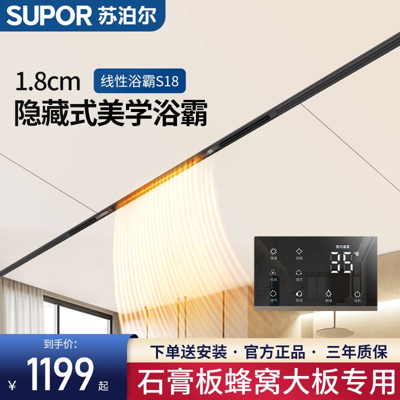 苏泊尔SUPOR线性风暖浴霸专为蜂窝大板吊顶和石膏板设计采用隐藏式线型安装美观大方节省空间完美融入现代 bathroom 装修风格产品具备高效速热低噪运行功能快速提升浴室温度带来舒适沐浴体验安全性能出众支持多重保护机制使用更安心现拼多多百亿补贴热销中原价961元现到手价仅950元性价比出众喜欢的朋友不要错过立即抢购享受温暖新生活