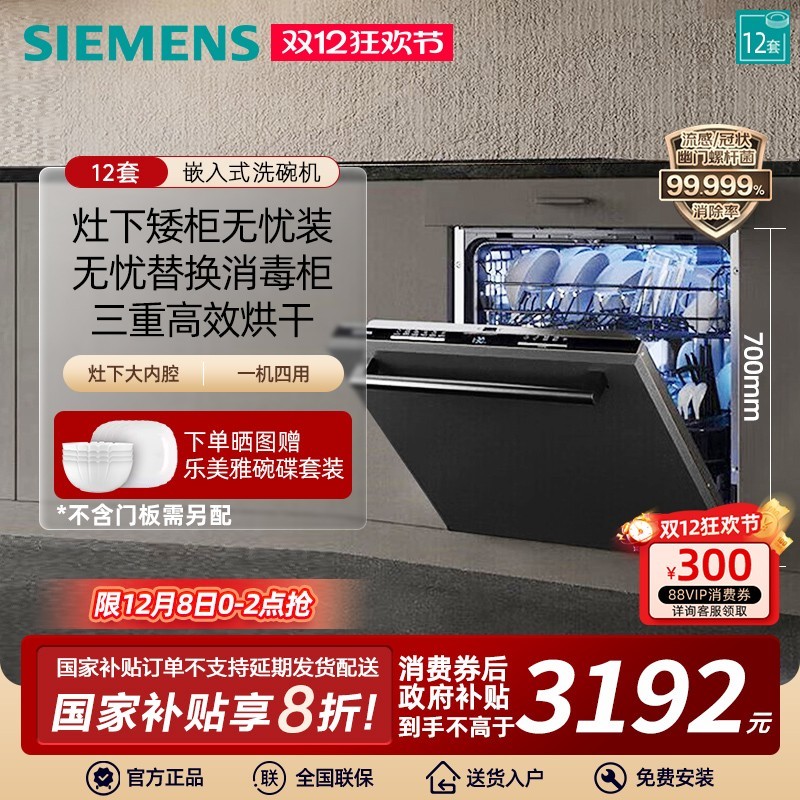 西门子灶下嵌入式洗碗机SE63HB66KC大容量12套家用设计,完美融入厨房橱柜,节省空间更显整洁美观,支持自定义门板搭配,轻松匹配各种装修风格。采用高效清洁系统,强力去除油污,高温除菌更安心,三层过滤系统确保餐具洁净无残留。智能感应技术自动识别脏污程度,精准调节水温和洗涤时长,节能又高效。