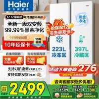 海尔(Haier)冰箱双开门对开门两门一级能效双变频风冷无霜620升超大容量超薄可嵌入节能家用白色家电国家补贴 620L+99.99%黑金净化+90°自动悬停门