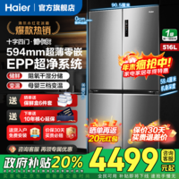 海尔(Haier)冰箱【小红花系列】516L冰箱594mm专业超薄零嵌入式十字T型四开门家用冰箱EPP超净国家补贴20%冰箱 516升+博卡灰+超薄零嵌+EPP超净+干湿分储