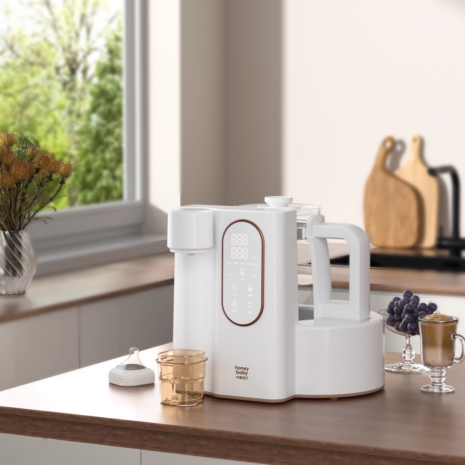 Honey baby 15% 哈妮宝贝恒温全玻璃热水壶婴儿泡奶机是一款专为婴幼儿家庭设计的智能调奶神器,采用高硼硅全玻璃内胆,无异味更安全,确保每一滴水都纯净健康。支持精准恒温控制,泡奶无需等待,一键自动定量出水,操作便捷省时省力,特别适合夜间冲奶使用。智能定量系统可自由设定出水量,精准匹配不同奶粉段数的冲泡需求,避免烫伤风险,让育儿更轻松。