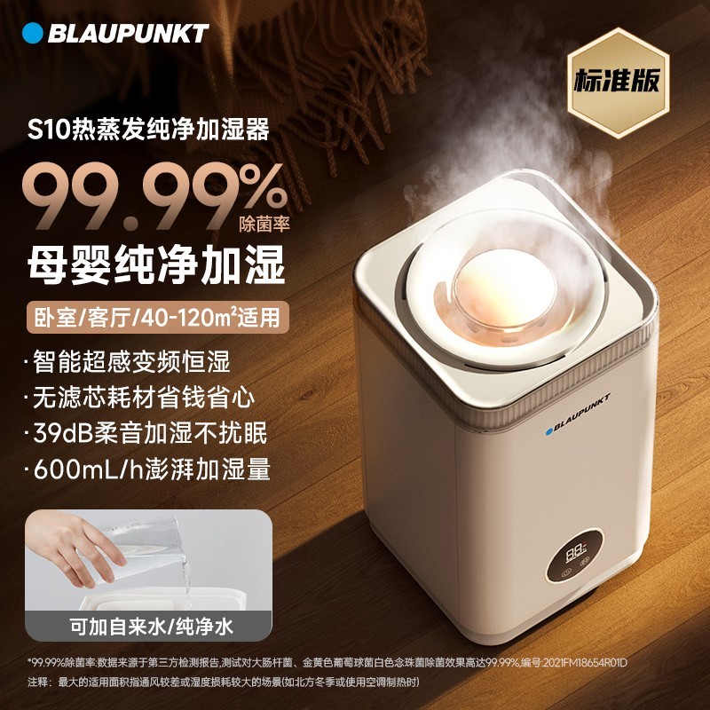 德国蓝宝BLAUPUNKT加湿器家用卧室静音轻音设计特别适合孕妇和婴儿使用,采用热蒸发蒸汽技术实现无雾加湿,有效避免传统喷雾式加湿带来的白粉污染问题,呵护家人呼吸健康。产品运行安静,夜间使用也不影响睡眠,大容量水箱满足长时间使用需求,智能恒湿系统自动调节室内湿度,让空气始终保持清新舒适。