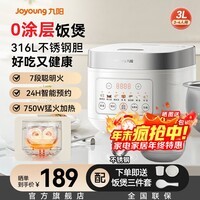九阳电饭煲3L家用款现低价来袭,采用316L不锈钢内胆,安全耐用无0涂层更健康,微压技术让米饭粒粒饱满香软,支持煲汤煮饭多种功能,2-3人家庭使用正合适,智能预约设计让你随时享受热饭热汤。