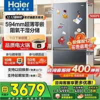 海尔(Haier)冰箱500升超薄零距离自由嵌入式60cm内法式多门四开门双门小红花套系一级能效变频大容量 500L+594mm超薄零嵌+黑金净化+干湿分储