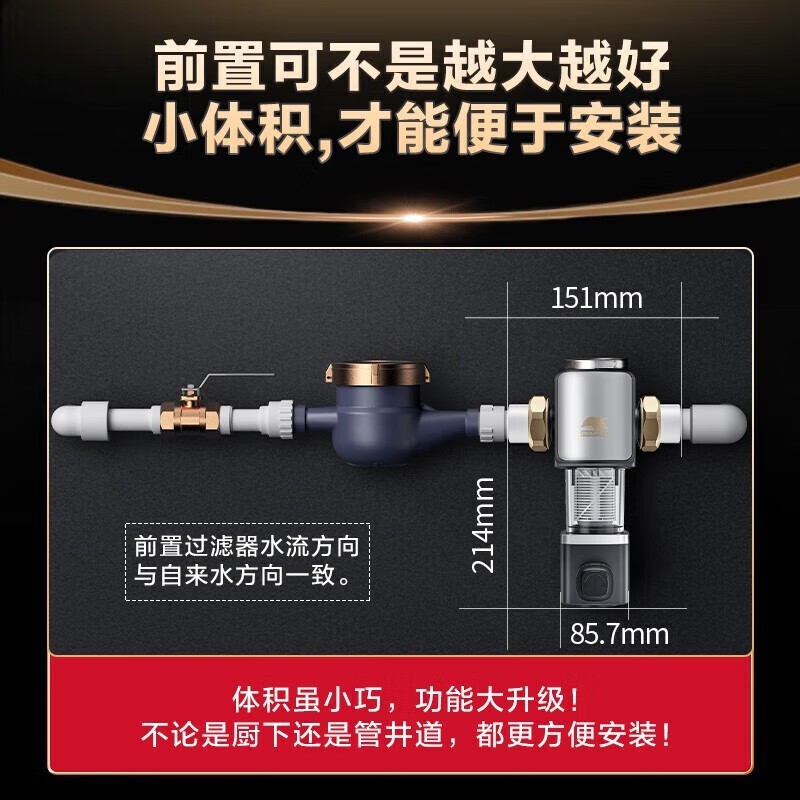 云米小海豚前置过滤器家用8T通量搭载316L不锈钢滤网高效拦截水中的铁锈泥沙虫卵等大颗粒杂质有效保护全屋净水设备和涉水家电水流驱动无需用电自清洁功能轻松省心安装后长期稳定运行免拆洗更省力双十二超值大放价原价227元现在到手价仅需143.65元立省83元机会难得速来抢购让全家用水更干净更安心