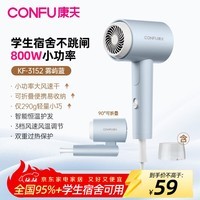 康夫(CONFU)电吹风机大学生宿舍高校专用800W小功率速干冷热风轻便便携迷你折叠吹风筒家用旅行妈妈实用礼物女 【宿舍不跳闸800W】高速款 雾屿蓝KF-3152A