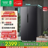 容声BCD-637WD11HP风冷对开门冰箱,637L超大容量设计,轻松满足全家食材存储需求,采用先进的风冷无霜技术,制冷均匀不结霜,保鲜更持久;星蕴外观时尚大气,融入现代家居风格,双变频节能科技,高效省电静音运行,长效保鲜同时降低能耗。