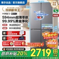 海尔(Haier)冰箱零嵌入式490升四开门十字门懒人统帅520双循环底部散热一级能效风冷无霜家用电冰箱国家补贴 490L+十字多门+MIX减压鲜盒+WIFI智控