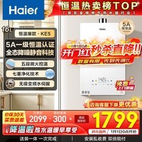海尔(Haier)燃气热水器 16升天然气家用 水伺服恒温 五段微火 净水洗 下置风机密闭稳燃舱 静音KE5/KD7max 16L 【KE5】爆款静音超高性价比