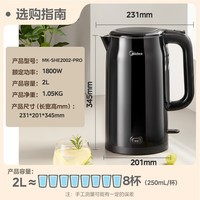 美的这款电水壶烧水壶电热水壶MK - SHE2002 - PRO值得入手。它采用316L不锈钢材质,拥有2升超大容量且一体无缝。这样的材质安全耐用,大容量满足家庭多人使用需求。