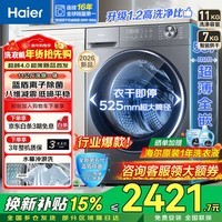海尔(Haier)【26年超越4.0新品58E】洗衣机全自动滚筒带烘干洗烘一体变频一级能效11公斤超薄家用 国家补贴 【新款H58E】 1.2洗净比+羽绒毛毯洗 洗烘一体