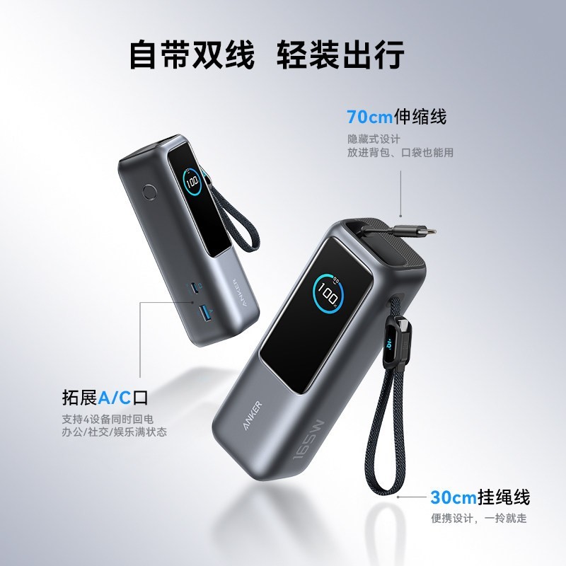 Anker能量舱快充移动电源165W大功率20000mAh容量,支持多设备同时快充,兼容多种快充协议,充电高效稳定,3C认证品质保障,可随身携带上飞机,出行无忧,满足差旅、办公、户外等多种场景用电需求,原价599元,现在促销价仅需372.72元,历史低价难得一遇,性价比出众,有需要的用户抓紧入手!