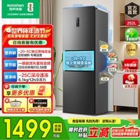 容声BCD-252WD18NP风冷三门冰箱,252L大容量墨韵灰设计,大气漂亮又百搭,搭载一体式离心风机与矢量变频压缩机,制冷强劲迅速、运行安静平稳,-25℃深冷锁鲜让肉类海鲜原汁原味,风冷无霜免除手动除霜烦恼,一级能效更省电,内置茶多酚等天然植物成分,抗菌率高达99.99%,健康保鲜有保障;原价1999元,现京东活动售价1828元,叠加满1元9折券、立减1%、首购礼金185元、以旧换新补贴15元及国补后,实付低至1202.95元,性价比超高,品牌信誉好、品质过硬、价格实惠,是追求静音、高效、高颜值生活品质家庭的理想之选。