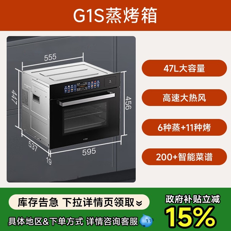 方太微蒸烤一体机G1S是一款嵌入式的家用厨房好物,集微波炉、蒸箱、烤箱、炸锅、炖锅等多种功能于一体,满足多样烹饪需求。这款产品官方编号为01,品质有保障。原本在天猫售价8499元,现在参与店铺优惠能立减1459元,并且还可享受15%的国家补贴(具体补贴地区详询客服),经过优惠后,目前到手价只需5984元,近期价格很划算,感兴趣的朋友可以入手。