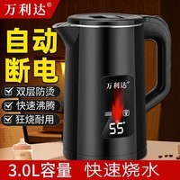 万利达电热水壶家用大容量不锈钢3L快烧水壶,采用食品级304不锈钢内胆,安全耐用易清洁,3升大容量满足全家饮水需求,支持自动断电与防干烧保护,烧水快速且使用安心,还具备保温功能,特别适合家庭、办公室及宿舍使用;目前京东活动价40.9元,领取满40减5元优惠券后下单1件实付仅35.9元,比原价39.90元还便宜4元,性价比超高,速抢!