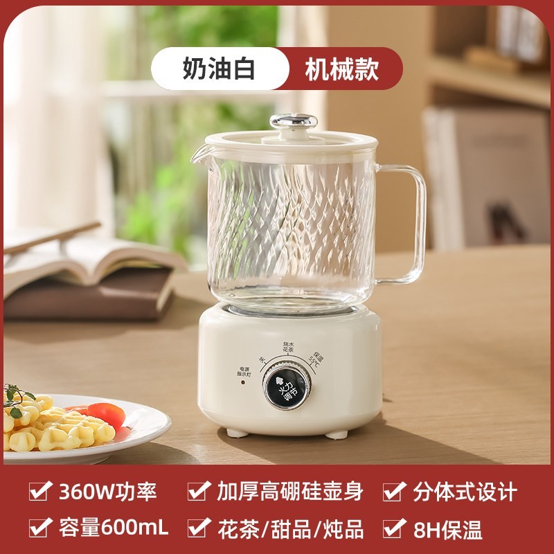米栗熊办公室小型恒温壶养生壶煮茶炉,专为现代办公与居家轻养生设计,采用高硼硅耐热玻璃壶身,透明可视、安全耐用,搭配精准恒温控制系统,支持多档调温,泡茶、煮花茶、炖银耳、温奶皆宜;体积小巧不占地,一人份容量刚刚好,360°环绕加热,速热节能又安静。