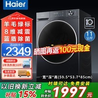 海尔(Haier)滚筒洗衣机换新补贴12公斤全自动带烘干洗烘一体机变频一级能效大容量精华洗衣晶彩大屏 以旧换新 蓝盾除菌+羊毛绿标+8维减震+羽绒洗 滚筒 11kg