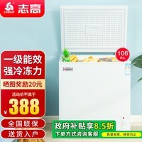 志高小冰柜家用一级节能省电迷你卧式冷藏保鲜储母乳冷柜106L单温单门,小巧省空间,一级能效更省电,精准控温锁鲜保鲜,专为家庭冷藏、母乳储存、饮料零食囤货等多场景设计,静音运行不扰生活。