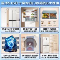 海尔(Haier)冰箱516升十字对开门T型四开门超薄零嵌入式一级能效干湿分储除菌家用大容量电冰箱国家补贴20% 燕羽灰+594mm专业超薄零嵌+母婴三档变温