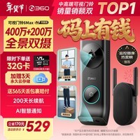 360双摄可视门铃6MAX家用监控智能摄像机,搭载400万+200万全景双摄,一机双视角,既清晰捕捉访客正面影像,又全面覆盖门前包裹区域,真正实现“即看访客、又看包裹”;支持WiFi无线安装、超清夜视、智能人形侦测与远程实时对讲,操作便捷,守护更安心。