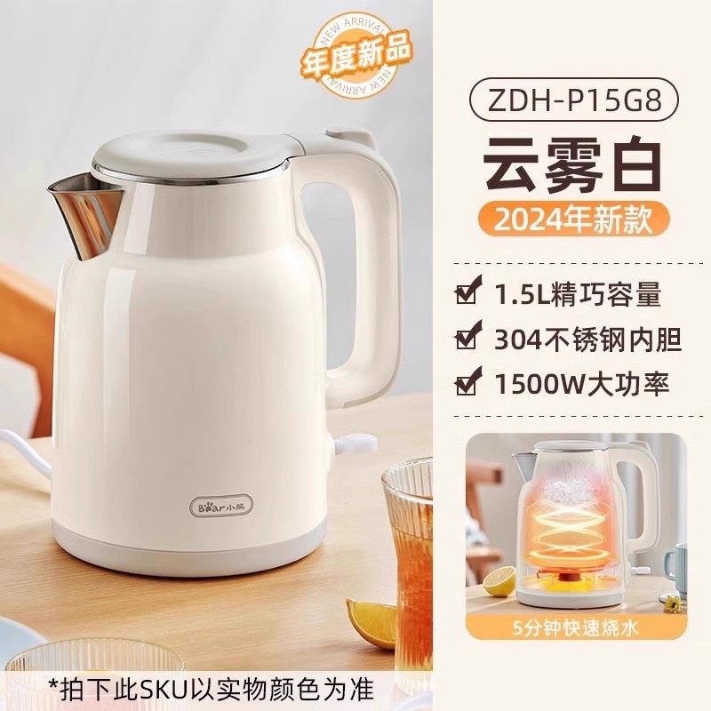 小熊家这款ZDH - P15G8电水壶值得入手!它是烧水壶、热水壶、电热水壶,集多种功能于一身。拥有大容量设计,能满足日常多人的用水需求。内胆采用304不锈钢材质,安全又卫生。而且它还是双层防烫设计,使用起来更安心。颜色分类有灰色可选。