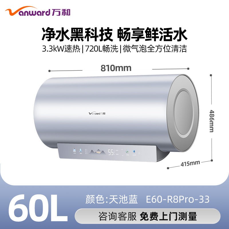 万和长白山R8Pro电热水器纳米气泡洗60L速热电家用款,搭载创新纳米气泡洗技术,出水细腻绵密,深层清洁不伤肤,60升大容量满足全家洗浴需求,3300W速热系统即开即热省时省心,智能恒温、多重安全防护,品质可靠更安心。