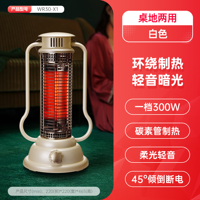 艾美特推出的这款家用鸟笼小太阳取暖器X4,外观设计就像马灯一样小巧可爱,颜色为奶油白,清新又美观。它是速热型的小型烤火炉,能快速带来温暖,无论是放在家里的客厅、卧室,使用都非常方便。