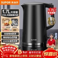 苏泊尔1.7L不锈钢烧水壶SW-17J416L,采用食品级304不锈钢内胆,耐腐蚀更健康,1500W大功率快速沸腾,1.7升大容量满足全家饮水需求,防干烧自动断电安全可靠,流线型手柄握感舒适,简约设计百搭厨房。