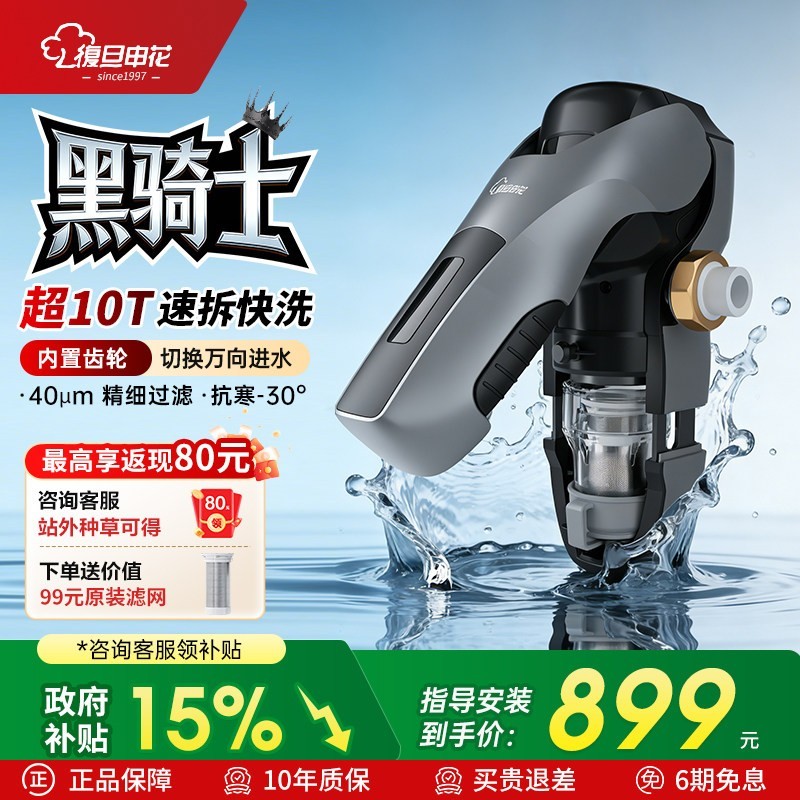 复旦申花前置过滤器5秒快拆速洗家用全屋自来水过滤10T大流量新款,采用高强度316L不锈钢滤网,支持一键快拆、5秒冲洗、免工具维护,适配家庭全屋用水场景,10吨/小时大通量设计不减压,有效拦截铁锈、泥沙、虫卵等杂质,守护全家饮水健康;原价1457元,现参与多重优惠:满899减400元券、立减400元、首单礼金70元、满330减40叠加立减158元,下单1件实付仅389元,淘金币专区再抵29元,最终到手价低至359元,性价比超高,品质净水一步到位。