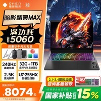 惠普(HP)【国家补贴】暗影精灵11 新款高性能旗舰游戏本 16英寸商务办公设计学生电竞MAX笔记本电脑 U7-255HX/RTX5060/32G+1T/MAX版 2.5K 240Hz 高刷电竞屏