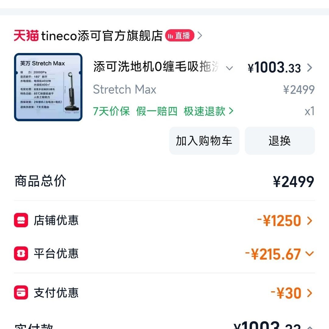 该洗地机原价2499元,当前活动售价为2499元,现在有优惠可享,领取满2499减750的优惠券、参与立减500、淘金币立减135,用购物券后,最终只需1003.33元就能拿下。而且收到货晒图还能返200,实际相当于803.33元,非常划算,有清洁需求的朋友别错过。