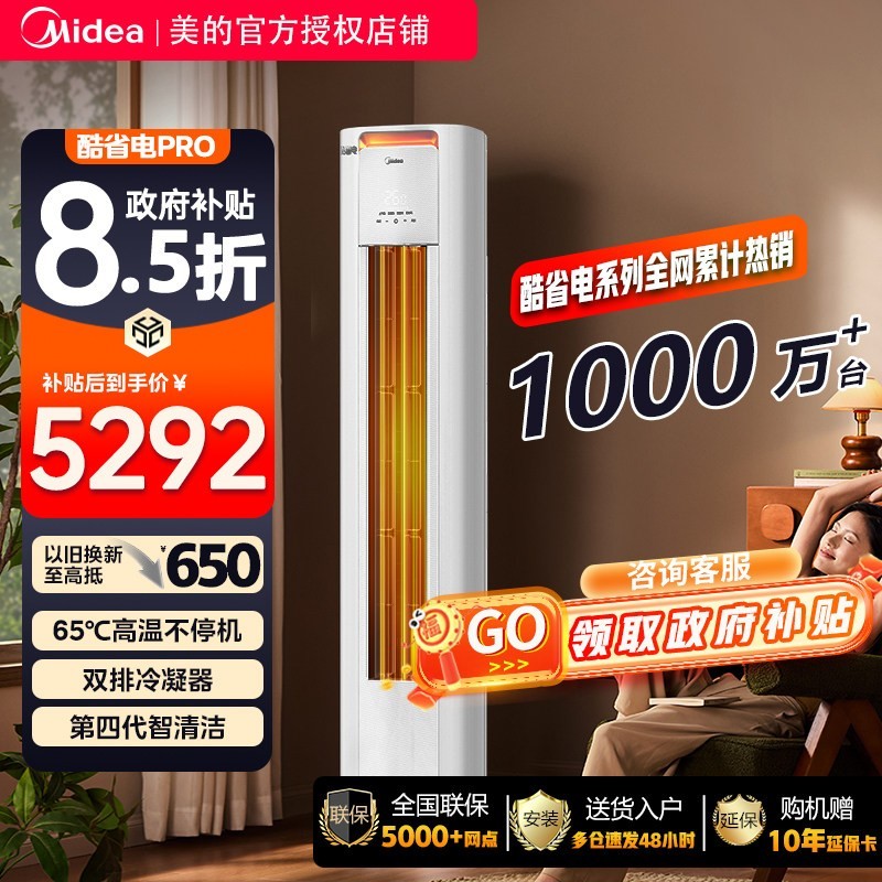美的酷省电空调柜机3匹2匹客厅立式空调一级变频冷暖新款Ultra,采用全直流变频技术,节能省电更静音,冷暖双强快速调温,搭载第四代自清洁系统,出风更健康,适用大面积客厅空间,外观简约大气立式设计节省占地;现天猫精选活动售价8499元,叠加满350减350优惠券、立减1000元与立减850元双重活动、国家补贴924.59元及淘礼金135.06元,下单1件实付仅需5239.35元,直降超3200元,性价比拉满,入手正当时。