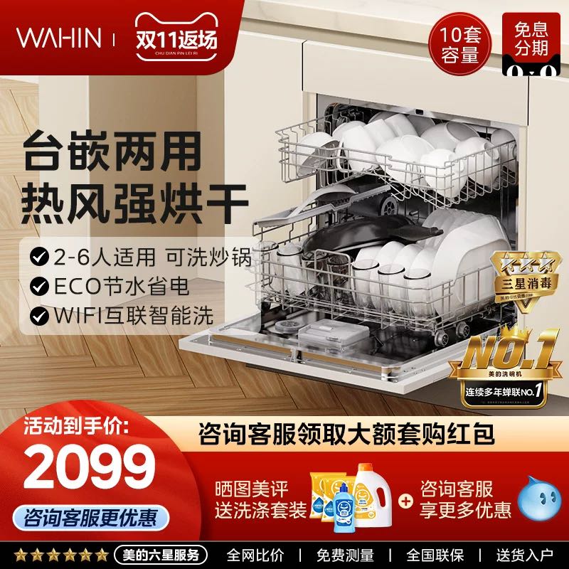 华凌VIE6全自动嵌入式洗碗机10套装,大容量设计轻松满足三口至五口家庭日常清洁需求,支持高温除菌、强力去油、智能烘干等多种实用功能,安装灵活适配各类厨房空间;原价3999元,现天猫精选活动价3999元,叠加满3999减2123元优惠券及立减480元双重福利,再享淘金币抵扣,最终到手价仅1396元,性价比超高,洗净更省心。