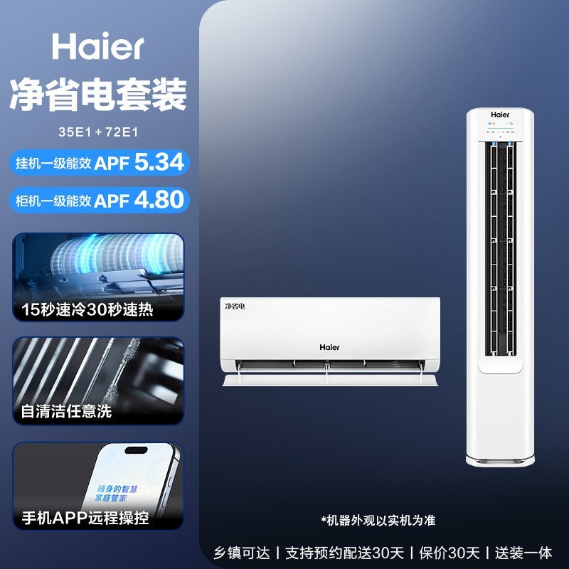海尔净省电小红花套系空调套装专为一室一厅家庭打造,包含1.5匹新一级能效挂机与3匹新一级能效柜机,双机协同制冷制热更高效,静音节能省电更安心,外观采用温馨小红花设计,简约百搭融入家居;原价14468元,现天猫商城直降5470元,最终到手价仅需8998元/套,高能效、高颜值、高性价比一步到位,有需要的家庭抓紧入手!