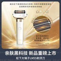 Panasonic大锤子2.0剃须刀刮胡刀电动往复式冰川白LM55-W405普通装,搭载升级双环刀网与智能压力感应系统,贴面顺滑不拉扯,深层净剃更高效;30°锐角刀刃配合14000次/分钟高速往复动力,轻松应对浓密胡须;IPX7级全身水洗设计,清洁便捷,续航长达60分钟,充电5分钟即可应急使用。