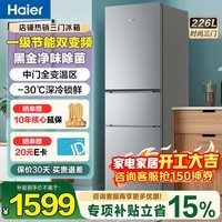 海尔 BCD - 226WGHC3E9XM 风冷三门冰箱,拥有 226L 的大容量,能满足家庭日常的食材存储需求。风冷技术避免了手动除霜的麻烦,让使用更加便捷。现在京东此款冰箱活动售价 1749 元,领取满 1500 减 150 元优惠券后,下单 1 件实付低至 1599 元。