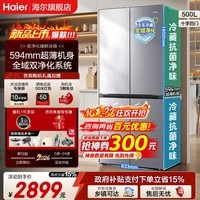 海尔冰箱【小红花系列】十字四开门500升 双开门深度60cm以下超薄一级能效大容量无霜电冰箱家用 全域黑金净化丨594mm超薄丨AI变频科技 【小红花系列】2026年新款丨500升