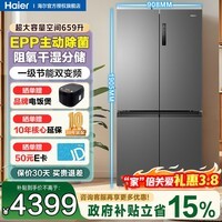 海尔(Haier)冰箱659升四开门十字双对开门一级能效双变频风冷无霜可嵌入600升以上家用超大容量冰箱国家补贴 深色659升大容量+EPP主动除菌+阻氧干湿分储