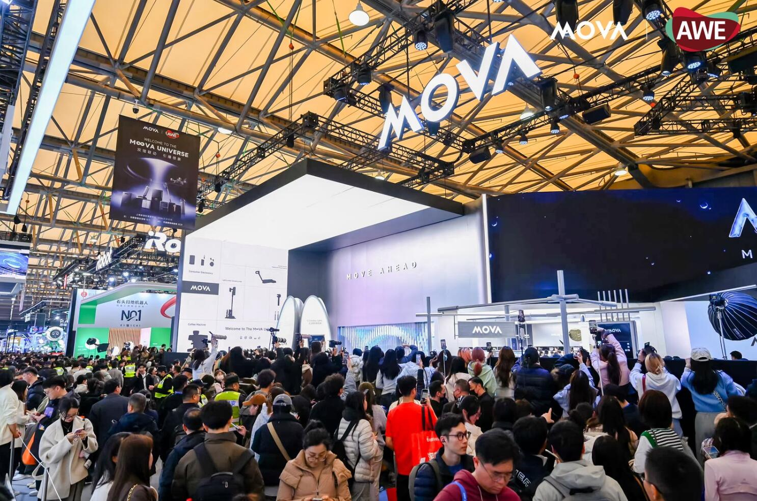 2026年AWE中国家电及消费电子博览会拉开帷幕,为行业呈现了一场技术与生活深度融合的盛宴。全球高端AI智慧生活引领者MOVA携32大产品线、31款创新产品重磅参展,以年度营收较2024年增长418%的亮眼成绩,完成对“家庭AI系统架构”战略内核的深度落地,正式宣告家庭AI主动时代的全面开启。