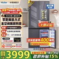海尔(Haier)【线下机皇】506L冰箱玻璃面板十字对开门四门全空间保鲜超博零嵌入一级能效EPP超净国家补贴15% 506L星韵银+全空间保鲜+零距离嵌入+EPP超净