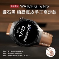 华为【高端新款】华为手表WATCH GT6Pro智能手表运动健康监测心率血氧骑行跑步待机长手表情人生日礼物 华为GT6 Pro曜石黑+手工植鞣皮表带大象灰 新品