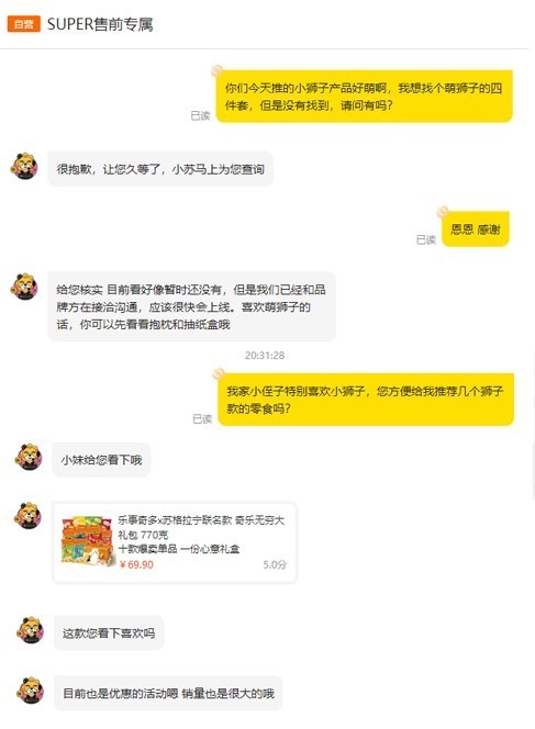 本文属于原创文章,如若转载,请注明来源:苏宁客服又被问住!"萌狮四件套"什么时候安排?//jd.zol.com.cn/723/7237672.html