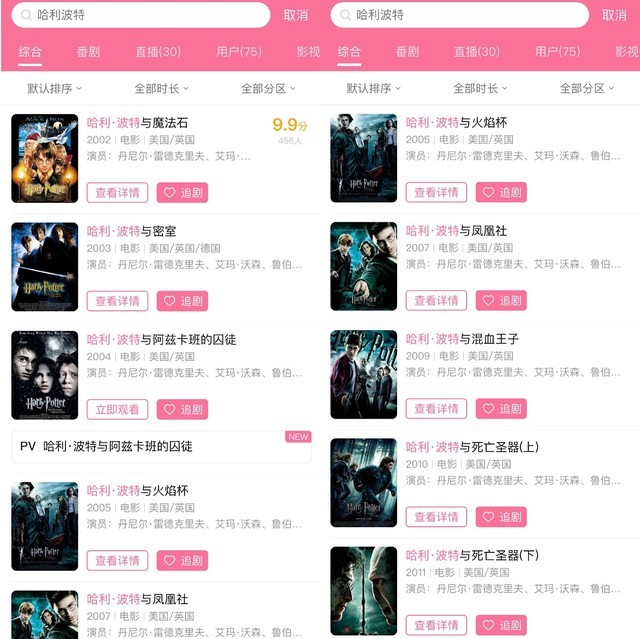 近日有网友发现,在B站搜索《哈利波特》会出现1-7部的所有结果,不过目前还不能播放。网友们纷纷表示,终于可以和千万沙雕网友一起边看《哈利波特》边讨论剧情了。