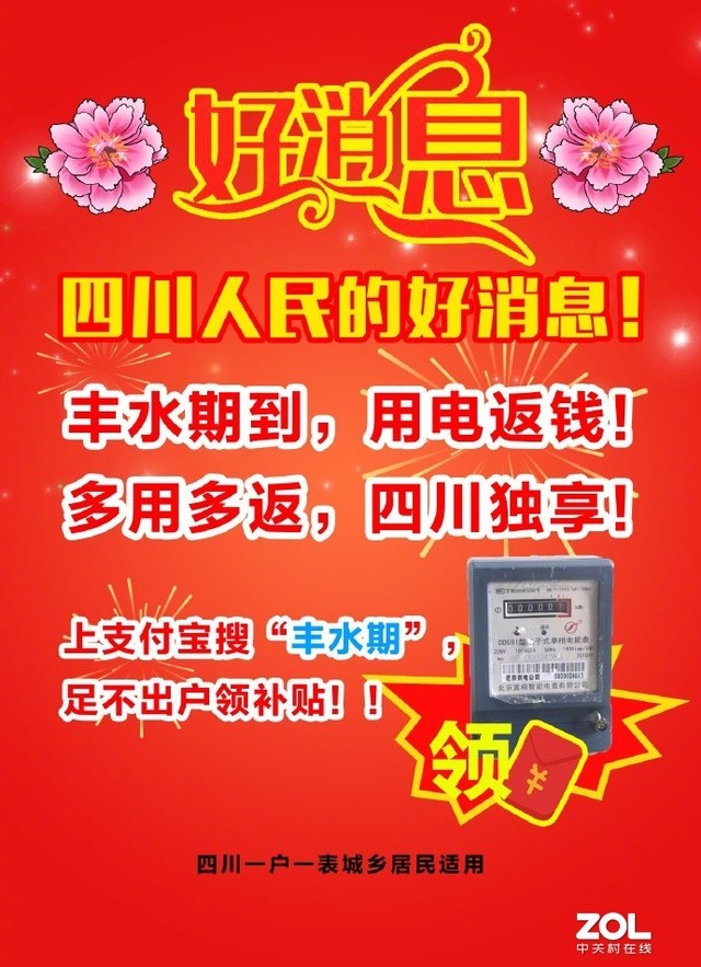本文属于原创文章,如若转载,请注明来源:用电就返钱?支付宝宣布四川人民专属福利!//jd.zol.com.cn/724/7243338.html