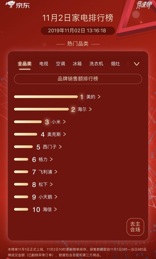 今天刚刚是11月2日,距离11日的正日子还有9天时间。距离终点还远,如果想在竞速榜上名列前茅还需要在京东家电平台上向消费者释放更多让利和优惠。