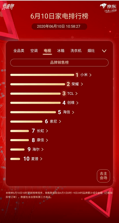 一晃618从开门红算起已经过了10天了。啧啧!这10天中,你剁了几次手?是不是参考了每天的排行榜?这么说来,我还是有一定功劳的吧~离618正日子越近,气氛也渐渐变得微妙起来,紧张的气氛已经起来了~今天京东家电公布了6月1-9日的累计销售排行榜,让我们看看,各家厂商祭出了什么大招,排名和开门红当天有没有明显变化~