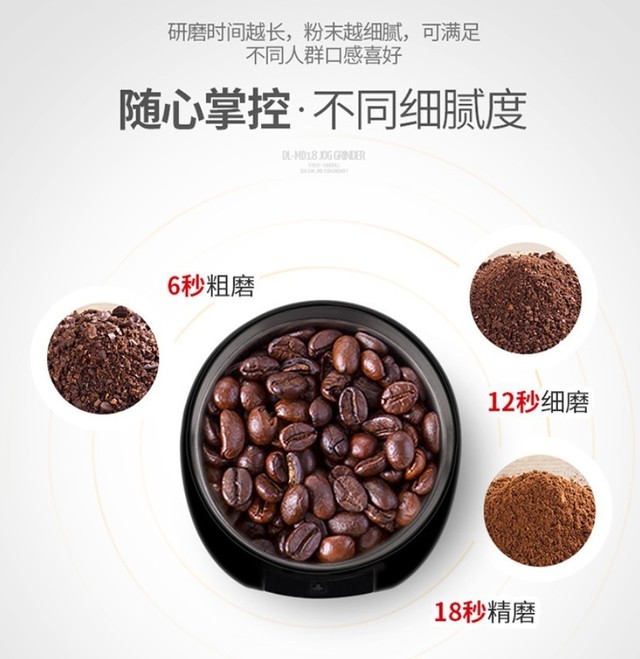 东菱咖啡研磨机,采用简约雅黑外观设计,精致中不失高雅,能够hold住各种场景,并且搭配迷你的不锈钢轻质机身,携带方面的同时,让你不管是在办公,还是居家休假都能随时使用。